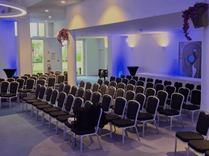 Notre salon de réception peut accueillir jusqu'à 120 personnes assises et jusqu’à 300 personnes en cocktail.